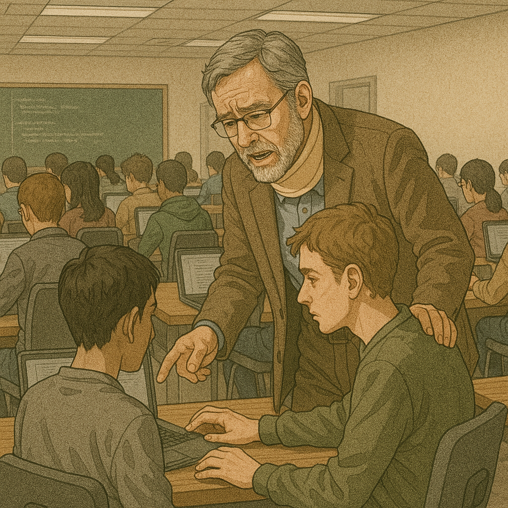 相変わらず男子学生が登場するのですが、プログラミングの演習は大体こんな感じですよね。GPTさんも雰囲気だけはうまく合わせてくれるのですが、私が女子大勤務であることは忘れてしまうようです。むしろ、この絵の中に女性が少ないのは何かしらGPTさんがバイアスかかっている証拠かもしれないです。ITはオタク男子の世界・・・みたいに思われているのでしょうか。LLM系は、こういったバイアスがそこここにかかっているので、注意して使わないと意図せず差別的なものを生み出してしまったりします。