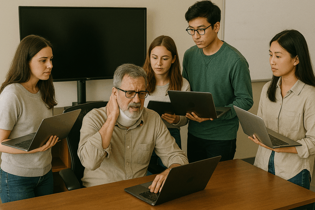 うちには男子学生はまだいないんですけどね。GPTさんは妙にリアルな映像を作り出すようになった半面、私が女子大学勤務であることを忘れてしまっている気がします。言えば良いのでしょうが、同じチャット(スレッド?)で話しているので覚えておいてほしいものです。そして、みんなロゴが消えてますが、どう見てもMacとiPad持ってきてますよね。ここまで見事に分かってしまう絵を描いてくるとはGPTさん大丈夫なのかな・・・。