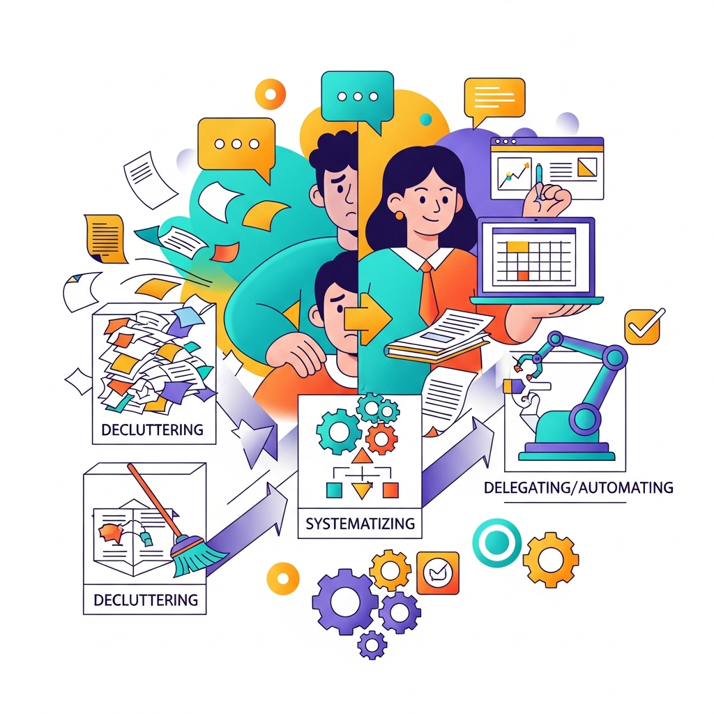 Q1: 溜め込んでしまった大量の書類は、どこから手をつければいいですか?A: まずは「緊急度が高いもの」(期日が近いもの)と「簡単ですぐに終わるもの」の二つに分けてください。期日が迫っているものから処理し、手が空いたときに簡単タスクを片付けていくのが効果的です。Q2: 秘書を雇う代わりに、外部に依頼する方法はありますか?A: はい、あります。最近では「オンラインアシスタントサービス」や「バーチャルアシスタント」といった形で、必要な事務作業だけをリモートで依頼できるサービスが増えています。コストを抑えつつ、必要なサポートを受けることができます。Q3: 事務処理の時間を確保しても、つい他の仕事をしてしまいます。A: 事務処理の時間(ステップ2)は、他の業務とは完全に切り離してください。その時間だけは、メールやチャット通知をオフにする、専用の作業場所で取り組むなど、「隔離された環境」を作るのが成功の秘訣です。