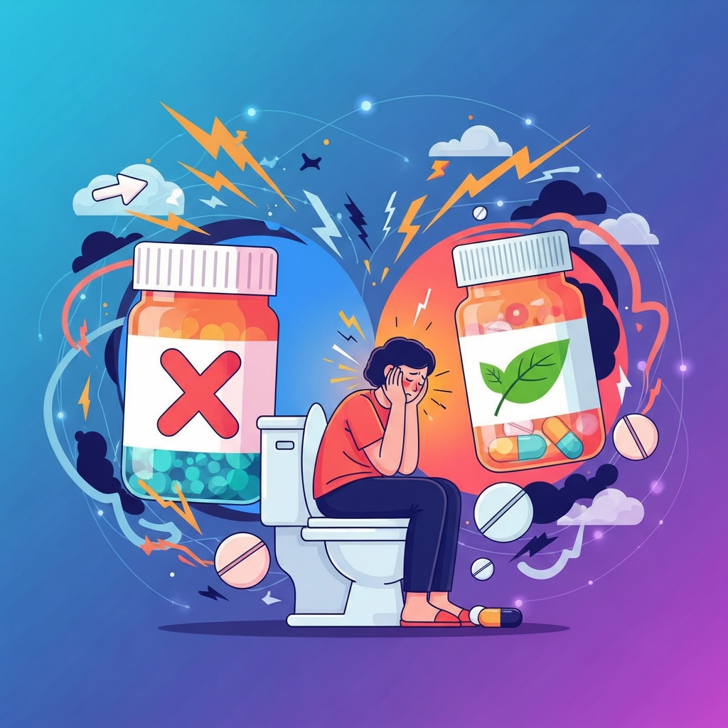 便秘薬(緩下剤)にはいくつかの種類がありますが、特に大腸を刺激して動きを強制的に促すタイプ(刺激性下剤)は、体質や体調、飲む量によっては一気に効きすぎることがあります。便が硬くなっているほど、その反動で激しい腹痛や下痢を引き起こしやすいのです。便秘が長く続いた後の使用は、特に注意が必要です。