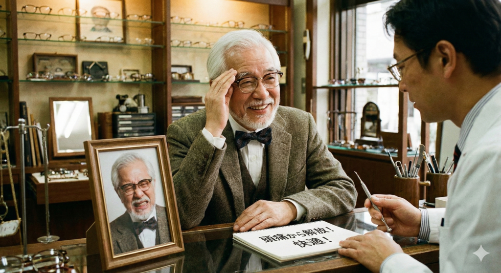 - 均等な締め付けの防止: フレームが顔を横から締め付けすぎないように、テンプルの広がり具合を調整します。長時間かけても痛くならない「ふわりとした安定感」が目標です。