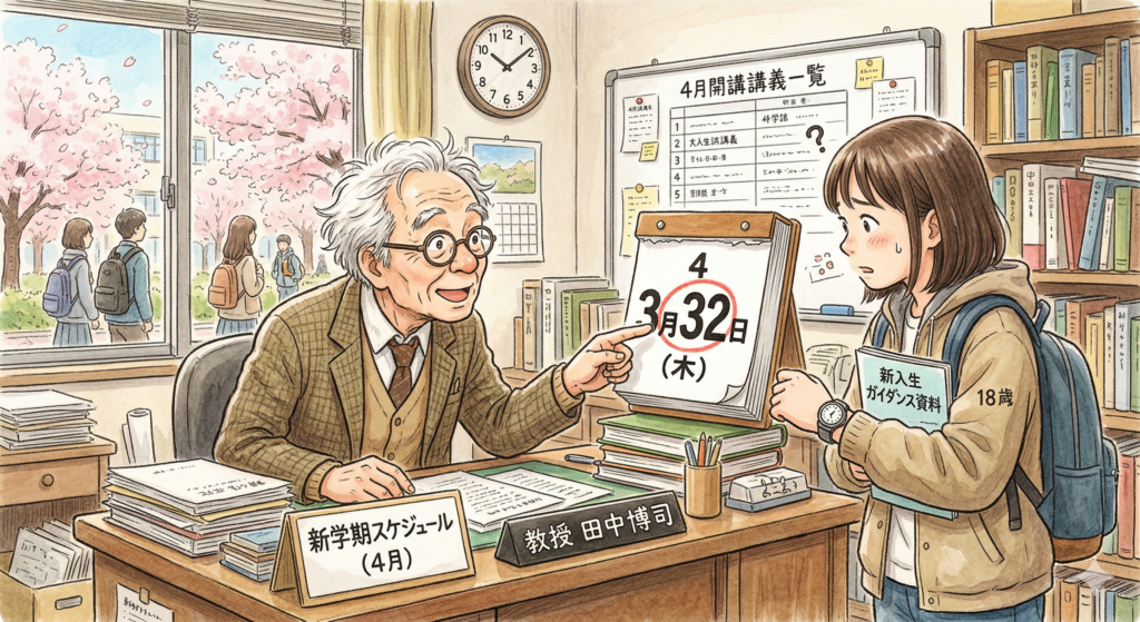 今日は4月1日ですね。エイプリルフールというやつです。Geminiさんに「まだ今日は3/32だと思っている人の絵を描いて」的なことを言ったらこれですよ。
