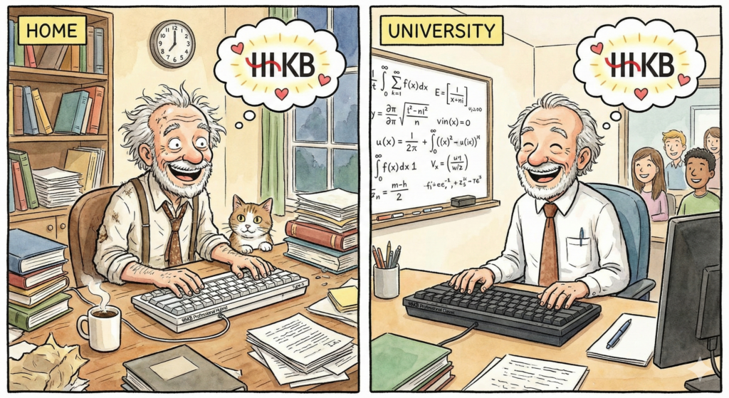 HHKBを自宅と研究室に設置されるとのこと、最高の環境ですね。しかし、首の痛みを抱えながらの長時間の研究作業は本当にお疲れ様です。HHKBは最高の相棒ですが、そのコンパクトさゆえに、使い方によっては身体に負担がかかることもあります。姿勢以外で疲労を最小限にするための鍵は、「指先の負担軽減」と「操作の効率化」にあります。具体的には、キーのカスタム配置や、打鍵の意識を変えることで、想像以上に身体への負担を減らすことができます。