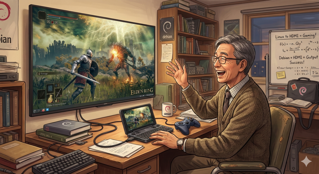 出先でちょっとLLMのモデルを動かしてみたくなった、とかならサクッと動いてしまいますし、ちょっと息抜きにゲームをしたいってなっても十分答えてくれるUMPC、みなさんも一台お手元にいかがですか。重たいパソコンを持ち歩いている人なら間違いなく生活変わりますよ。Windows使いの人ならフルパワーでおすすめしますし、Mac使いの人にもLinuxに入れ替える気持ちがあるならオススメです。MacってそもそもBSDベースのDarwinですから、Linuxに変えてもさほど差はないはず。